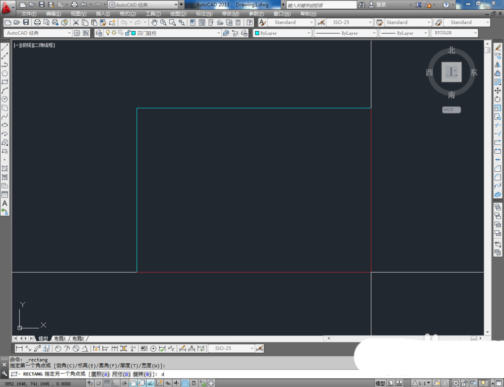 2、點擊【矩形工具】,按圖示在命令欄輸入:d并按下空格鍵,輸入長度值:1650并按下空格鍵,繼續輸入寬度數值:1000并按下空格鍵,完成矩形圖案的繪制。選中圖案,點擊右邊工具欄中的【分解工具】,將圖案炸開(如圖所示);
