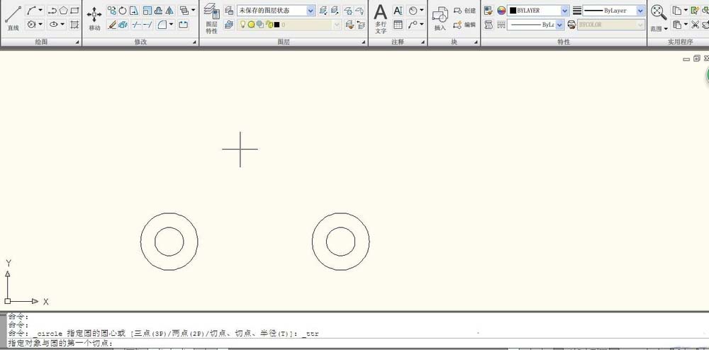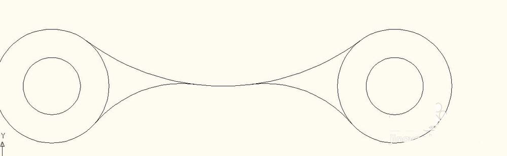 1、先畫一個半徑五十里面二十五的圓然后向右偏移30。