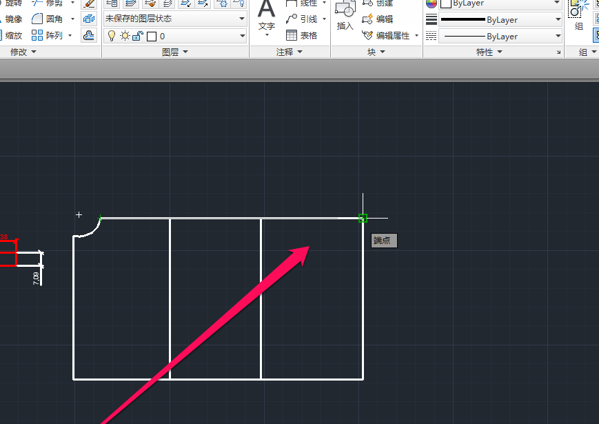 5、然后按照圖形方向,向外拉出標注。