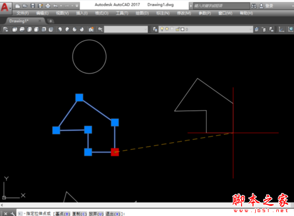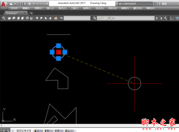 8、如果圖形是一個面域,點擊之后則出現(xiàn)數(shù)個夾點,這時點擊任意一個夾點都可以直接移動圖形。