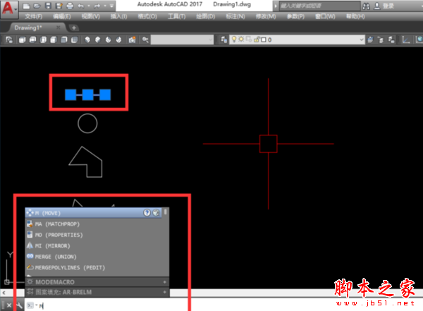 2、首先選中要移動的圖形。然后輸入命令“M”。