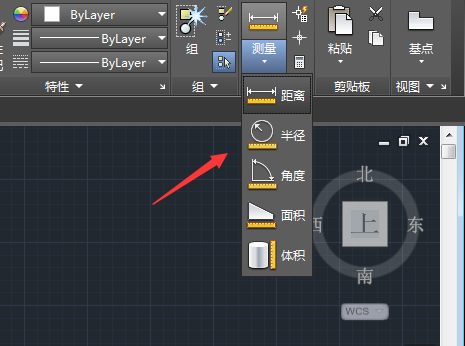 5、點擊測量選項在其下拉菜單里找到半徑選項,如圖所示: