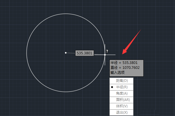 7、我們使用鼠標左鍵點擊更改繪制的圓形,可以看到我們就得到了半徑的尺寸了,如圖所示: