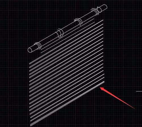 8、使用修剪命令我們將多余的線進(jìn)行修剪,然后畫出卷簾之間的連接件這樣我們的卷簾門就畫好了,如圖所示:
