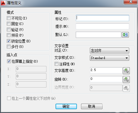 2、選擇【插入】》【塊定義】》【定義屬性】選項,打開【屬性定義】對話框。