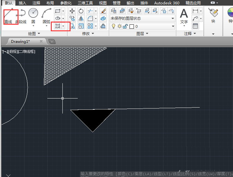 1、選擇【直線】和【圖案填充】選項,繪制出標高符號。
