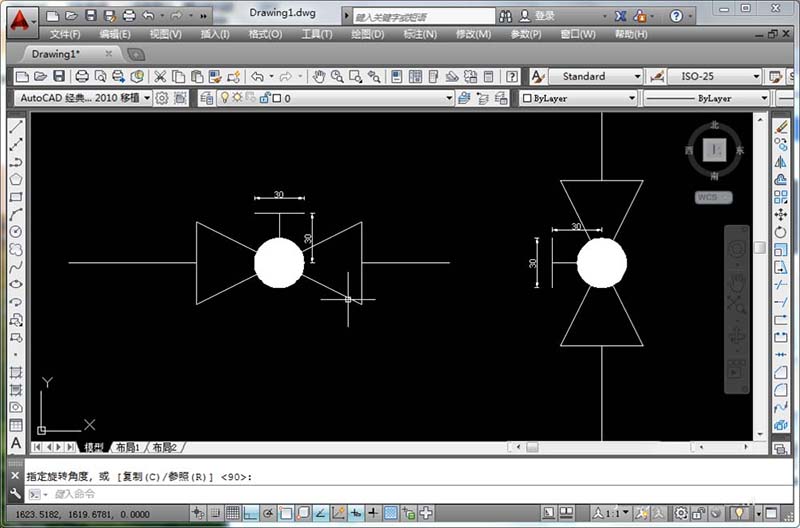 6、方向旋轉即可,大小可以等比例縮放。這就是給排水中的隔膜閥繪制。