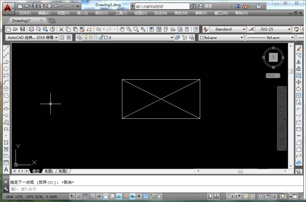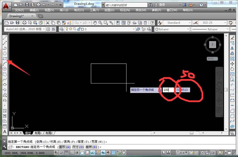 1、先用矩形工具繪制一個長100,寬50的矩形。在矩形內畫出對角線;