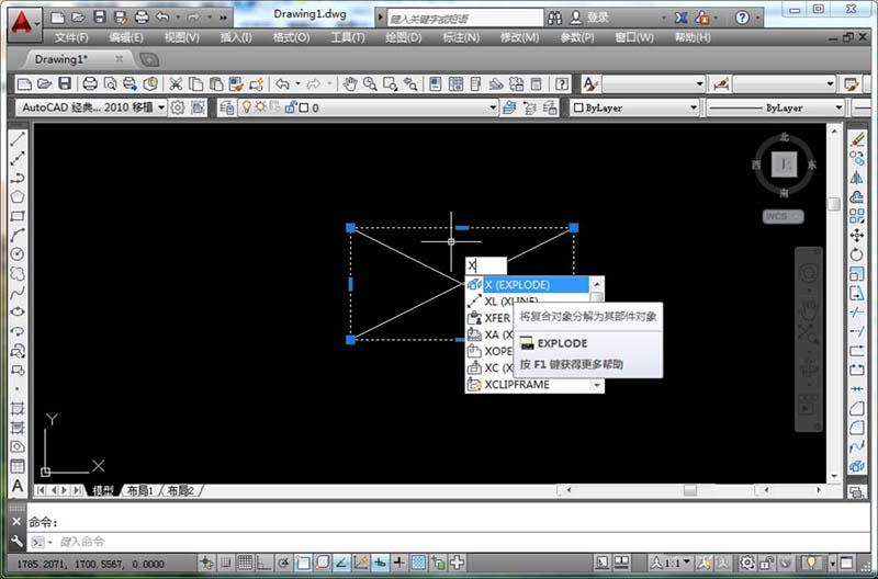 2、用快捷鍵【x】拆分矩形;刪除矩形兩條長邊;