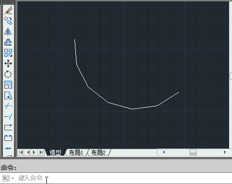 2、將剛畫好的圓弧,滾動鼠標滾輪使其無限縮小,縮小到不能再縮小后,在命令欄輸入RE,繼續縮小,反復幾次之后,雙擊鼠標滾輪。此時我們發現,圓弧變成正多線段!!