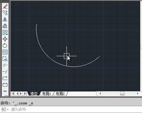 1、我們在繪圖區域,繪制一個任意的圓弧。畫完之后,我們可以看到這段圓弧是圓滑的。