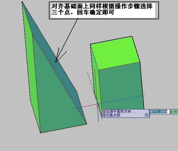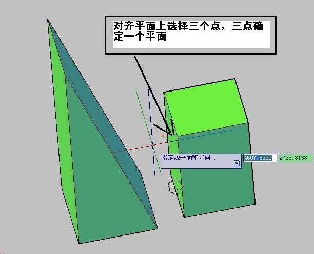 4、點擊對象后提示你選擇三維面上的三個點,三點確定一平面。這三個點可任意選擇,但是不能重復。