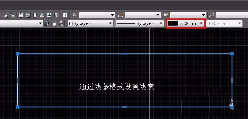 2、先選中想要設置線寬的矩形,然后在特性工具欄中將線寬調整為2mm。