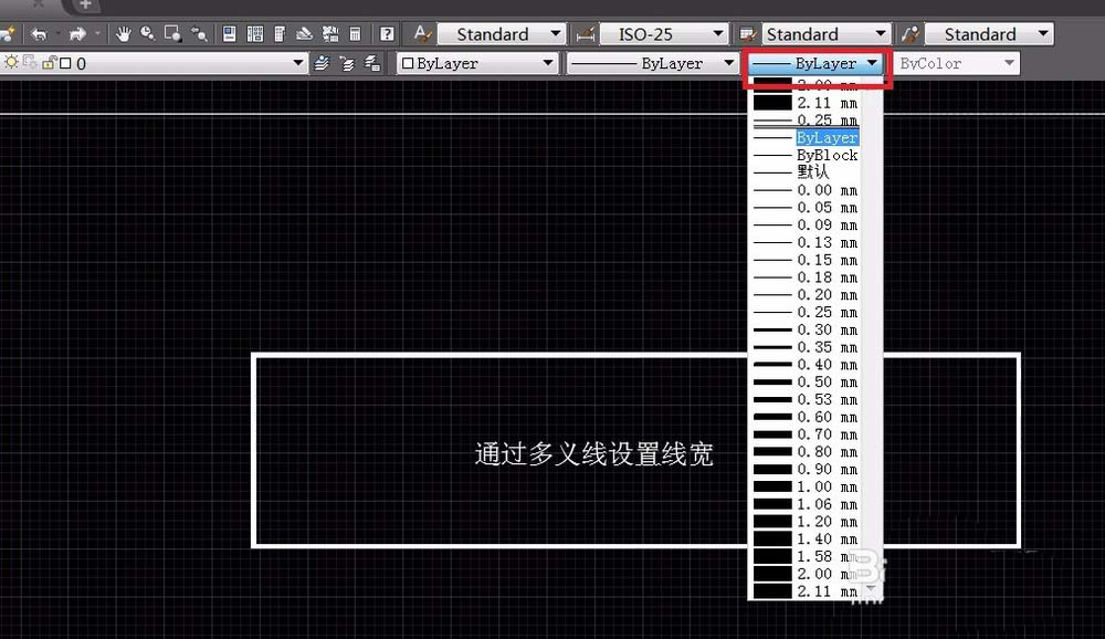 CAD所有線條,無論直線曲線,都有幾個特性可以設置,包括線型,圖層等,當然,也包括線寬。