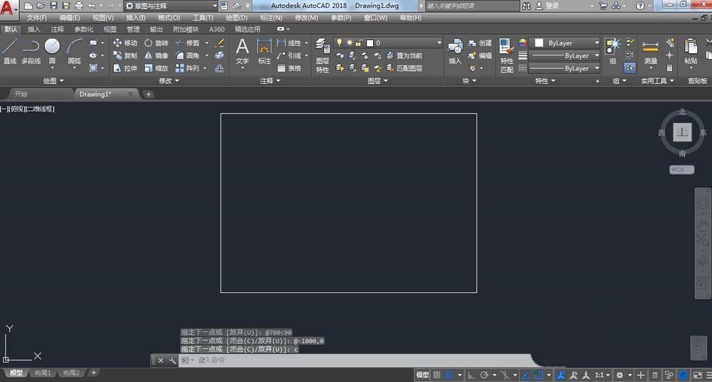 3、接下來繪制,點擊直線任意一點輸入@1000,0