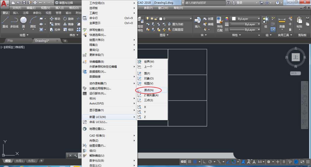 8、接下來在工具欄下,新建ucs找到原點,并移動原點 如圖: