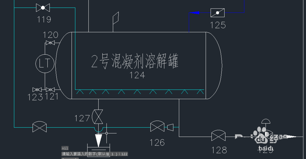 2、在提示框中輸入122,回車,發現,大于等122的編號都自動增加了1,這時,復制任何一個編號粘貼到卻編號的閥門附件,并修改為122,完畢。