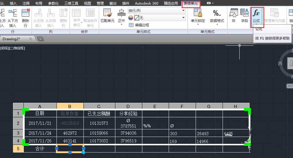 CAD表格中的數據怎么求和? cad單元累加的教程