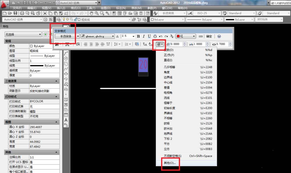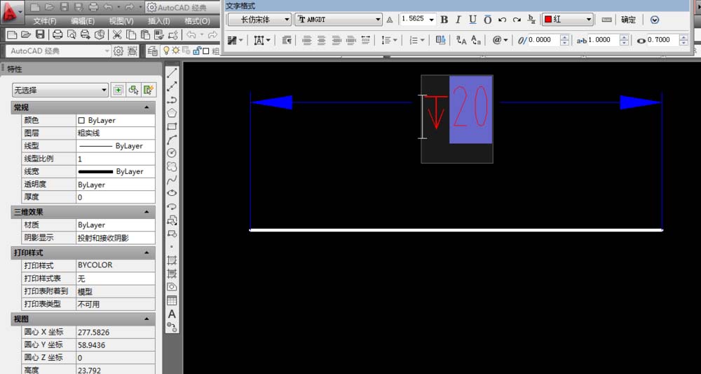 7、如下圖所示,回到了CAD的標注,在20前面直接“ctrl+v”,粘貼完畢。