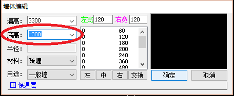 3、依次點擊衛生間四周的的墻體,打開“墻體編輯”頁面,修改墻體數據,然后點擊“確定”,如下圖所示