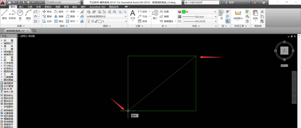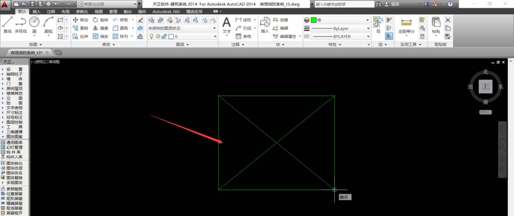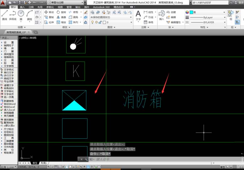 10、完成消防箱的繪制后,我們即可將其放置到我們的圖紙中的合適位置,但是對于此類消防器械,我們需要在圖紙的注釋地點,進行相應的圖形以及文字注釋,這樣可以幫助看圖者能夠更加輕松的讀圖。