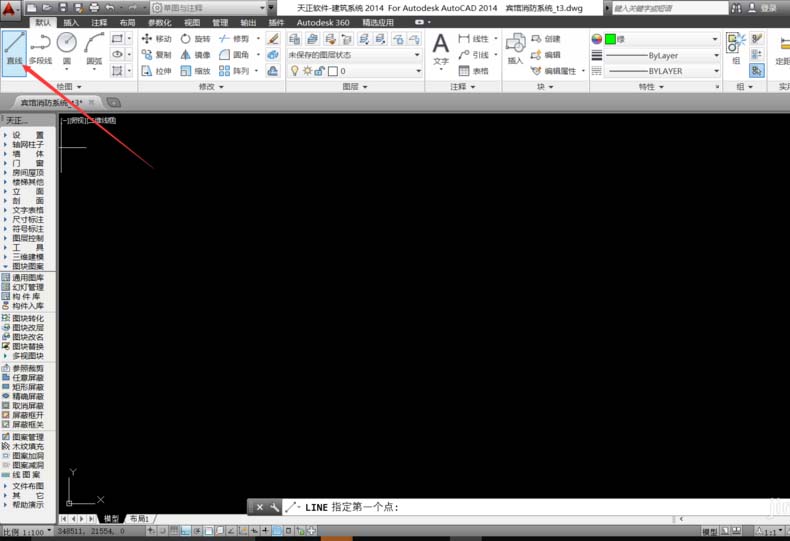 2、繪制一個AutoCad的消防箱,我們首先,在AutoCad上側的工具欄中選擇“直線”命令,在AutoCad上進行直線的繪制,作為消防箱的外框。
