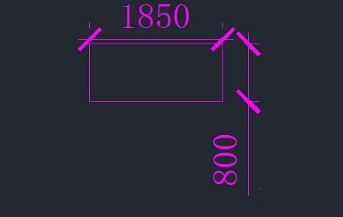 3、執行“矩形”命令(rec),根據命令行提示,在繪圖窗口任意選取一點作為“第一個角點”,在鍵盤上輸入“1850”,然后輸入逗號,再輸入800,并按空格鍵確定,這樣就繪制了一個1850X800mm的直角矩形。