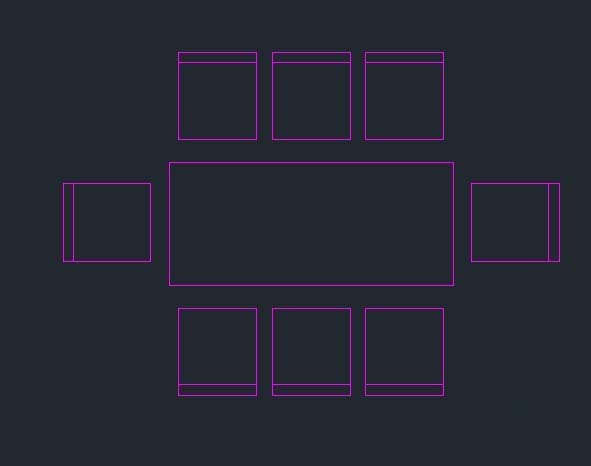在本經驗中,通過矩形命令來繪制餐桌的輪廊,再通過矩形和偏移命令來繪制椅子,再通過復制、鏡像、旋轉等命令,將椅子分別布置在餐桌的四周。