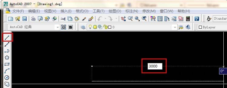 4、點擊下直線按鈕在空白處隨便點一下,然后往四個方向隨便哪個方向移動鼠標,數值是可以直接輸入的(以毫米為單位),輸入好數值按“回車鍵”就可以了。