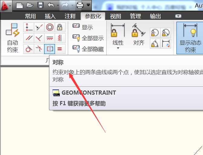 3、然后點擊參數化-對稱,開始使用這個功能。