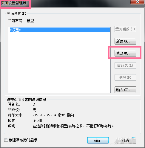 4、進入到“頁面設(shè)置管理器”,在該頁面找到“修改”,