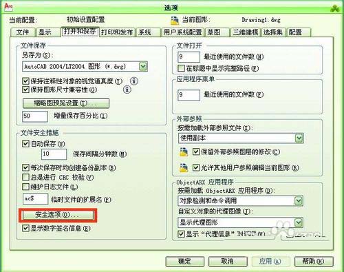 4、進(jìn)入打開和保存設(shè)置以后,用鼠標(biāo)點擊下面的安全選項按鈕