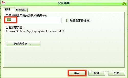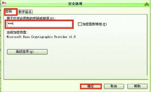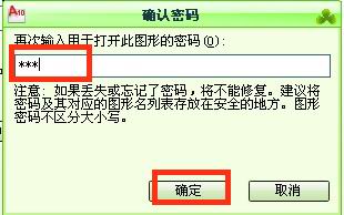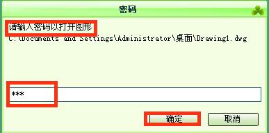 7、設(shè)置好以后再打開圖形的時候,就會出現(xiàn)密碼窗口,可以輸入密碼后點擊確定打開圖形
