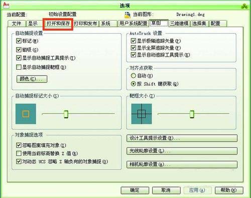 3、選擇選項菜單以后,選項窗口出現(xiàn),用鼠標(biāo)點擊上面的打開和保存按鈕