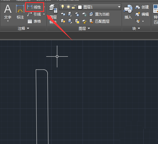 7、畫好角鋼之后,在上面找到線性標注選項,如圖所示: