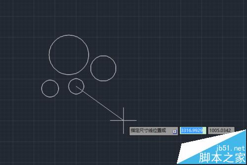 5、再來看看半徑標(biāo)注,下面是幾個半徑不同的圓,要一次進(jìn)行全部半徑標(biāo)注,也可以使用快速標(biāo)注。首先也是全選圓,然后點擊快速標(biāo)注,輸入r,回車,可以看見要求指定尺寸線的位置,任意指定一個位置,最后就可以看見所有的圓半徑都被標(biāo)注出來了。