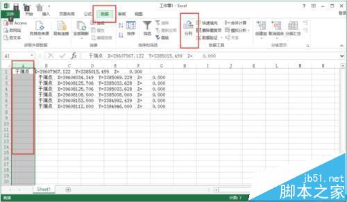 6、選擇第一列,數據 ----分列,調出分列對話框