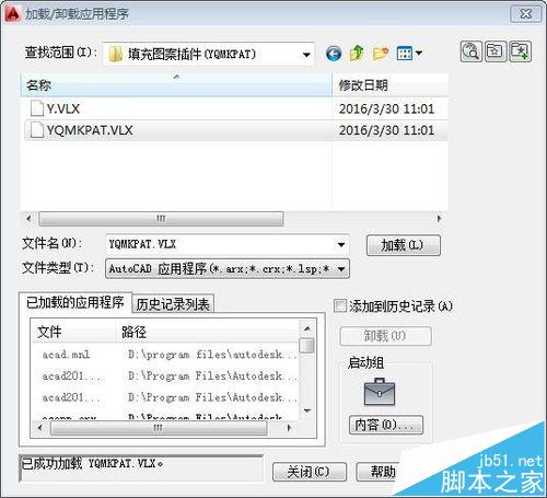 1、打開cad軟件,任意打開一個你想截取填充的cad圖紙,將外掛程序加載進來,在“工具”-“加載應用程序”里,找到外掛程序,點擊加載,成功后,關閉對話框