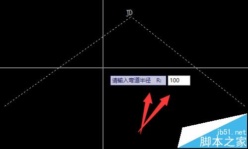 5、根據提供的曲線要素,輸入曲線的半徑,例如本次輸入為半徑500,回車。