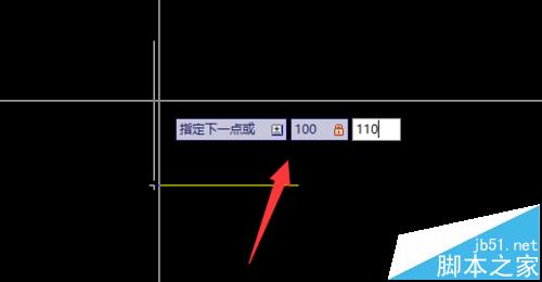 2、在線段的另一端,做一條直線,利用極坐標(biāo),輸入“100<110”,回車。