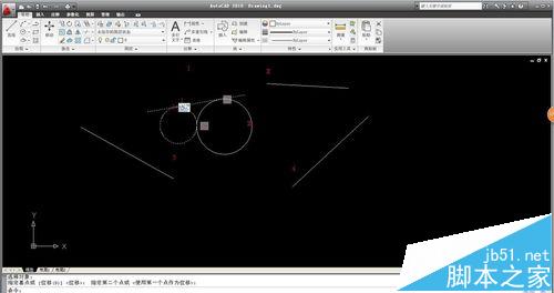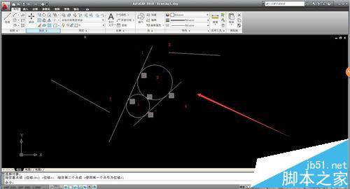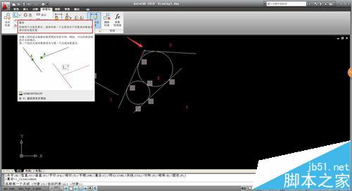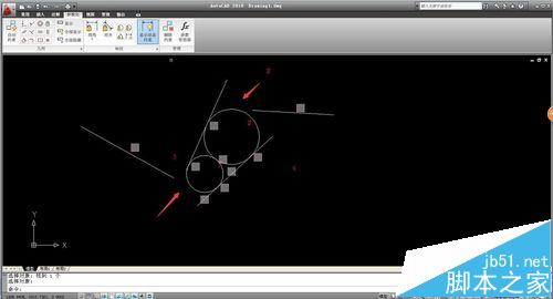 8、同樣的相切命令讓直線3和圓1相切,圓2和直線4相切。