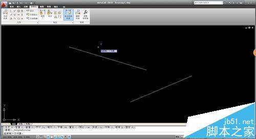 3、我們分別選擇兩條直線,選擇之后,直線自動跳轉(zhuǎn)為垂直狀態(tài),如圖所示,需要注意的是這里選擇直線時,選取點的不同,會造成垂直時效果的不同,大家可以試一下。