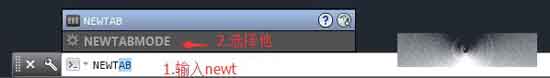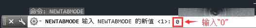 3、進(jìn)入編輯界面后,在命令行里輸入“newt”,彈出“NEWTABMODE”,鼠標(biāo)點(diǎn)它,再輸入“0”,按回車退出