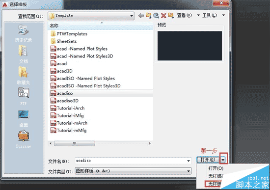 2、按下上圖的“新建”按鈕后,彈出下圖的對(duì)話框,在“打開”按鈕旁邊的下拉按鈕“”點(diǎn)一下,看到“無樣板打開-公制(MM)”選項(xiàng),點(diǎn)它,進(jìn)入編輯界面