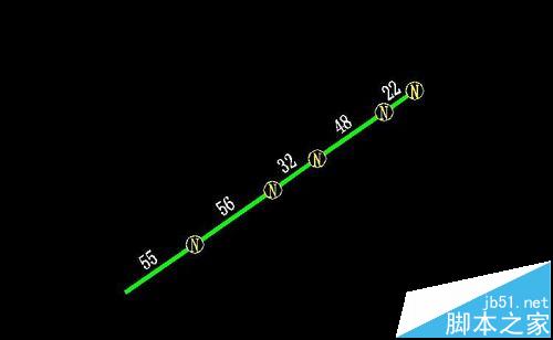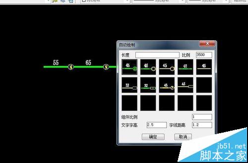 5、例如:調整比例為1:3500、字高2.5、字線距離1.2、組件比例1;輸入框輸入距離55+56+32+48+22、點擊第一個圖例,(第一個圖例為新建桿路,第二個為舊桿新建吊線,三個為利舊桿路其他的自己摸索下吧)