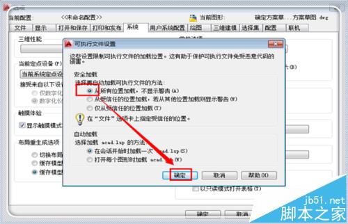 4、在“可執(zhí)行文件位置”對話框中,在“安全加載”欄目下,點擊第一個“從所有位置加載,不顯示警告”,點擊“確定”。