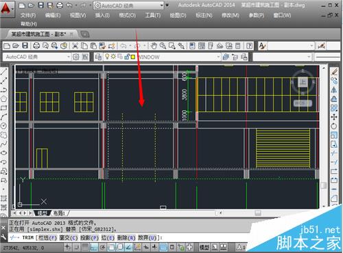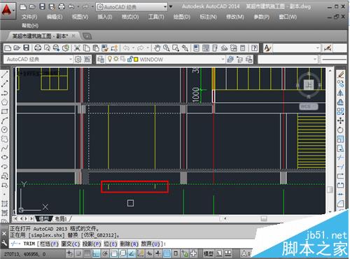 2、對于初學者,一般是先點擊“剪切”按鈕,然后點擊選中一條線,點擊“回車”確定作為邊界,然后點擊和它相交的線,就剪切斷了,不過這種方式這里沒詳細提及,因為效率不是很高。這里介紹高效率的方式。