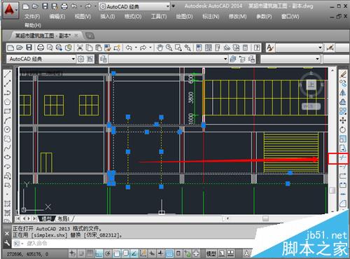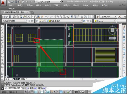 3、如果是精確操作或者是不能批量操作的,就采用這里的第二步簡單方式,如果是很規則的,如這里,那就可以直接使用“欄選”,或者是“窗交”的方式,按抓鼠標左鍵,從右下角到右上角拖動鼠標,選中所有對象。