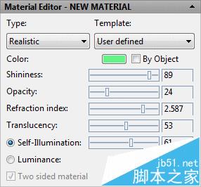 1、使用滑塊在材質編輯器 ,嘗試新的材料一些新的設置。這里是做了如下所示的材料的設置。