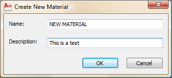 4、給它一個很好的名稱和描述,然后按確定。現在你回來到材料面板。